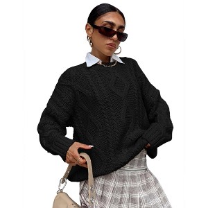 Womens Cable Knit Crew Neck Sweaters Long Sleeve Oversize Comfy Pullover Fall Winter Jumper