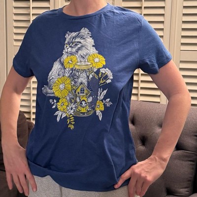 Womens Cat and Mouse Funny T Shirt Kitten Graphic Tee for Ladies - Crazy Dog Women's T Shirt For Cat Lovers Royal S