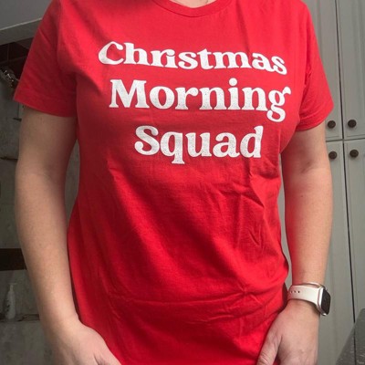 Womens Christmas Morning Squad T Shirt Funny Xmas Party Family Novelty Graphic Tee for Women - Crazy Dog Women's T Shirt Gift For Christmas Red S