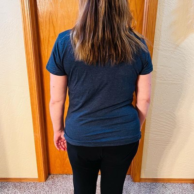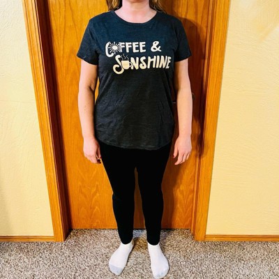 [This review was collected as part of a promotion.] I am 5’5” tall and normally take a women’s size large T-shirt. This shirt fits true to size. I really like the color, the fit and the coffee and sunshine graphic on the front of the shirt. This shirt is soft and has just the right amount of stretchability to it. The shirt is comfortable to wear with a pair of leggings or a pair of jeans.