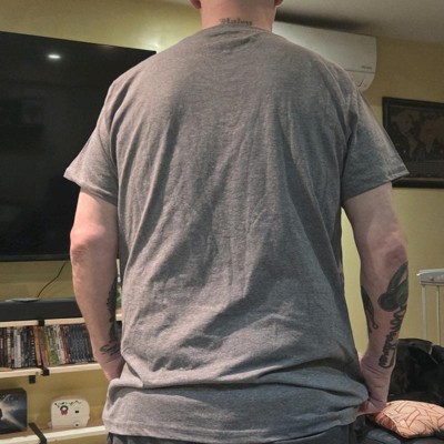 [This review was collected as part of a promotion.] My fiance is 5', 7" tall, approximately 180 pounds. He usually wears an xl but i got an xxl thinking it likely ran small. This did not and the xxl was a bit big for him. I would go with your regular size. The shirt martial is soft and on the thinner side. The design is not too flashy, which he likes.