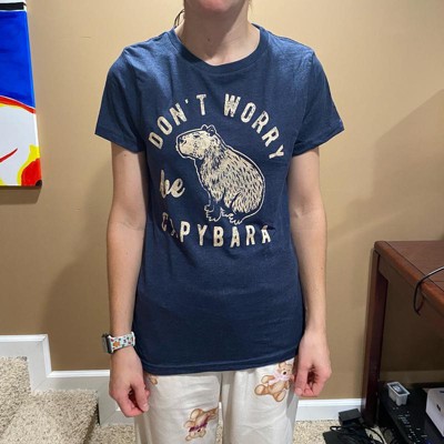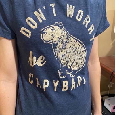 Womens Dont Worry Be Capybara T Shirt Funny Sarcastic Parody Lyrics Tee for Ladies - Crazy Dog Women's T Shirt for Animal Lovers Navy L
