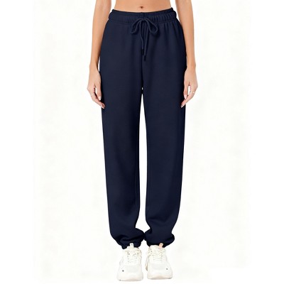 Womens Elastic Waist Tie Pocket Relaxed Fit Wide Leg Sweatpants Long Pants - 1 of 4