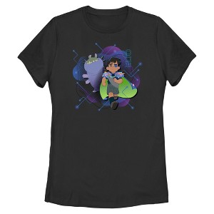 Suit up, Earthling, adventure is calling! Join Elio, an unexpected ambassador from Earth, as he navigates his first contact with the universe's wildest alien council in this new officially licensed Women's Elio Graphic T-Shirt! This awesome design features Elio strolling alongside Glordon, with futuristic blue and purple lines and shapes peeking from behind. Whether you're exploring new worlds or just vibing on planet couch, don’t miss out, grab this cosmic Elio apparel, and get ready for lift-off!