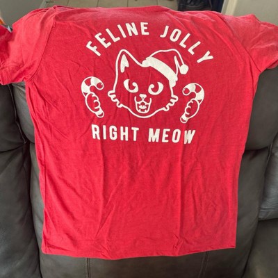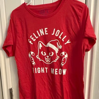 Womens Feline Jolly Right Meow T Shirt Funny Christmas Cat Kitten Lover Graphic Tee - Crazy Dog Women's T Shirt Gift For Christmas Red L