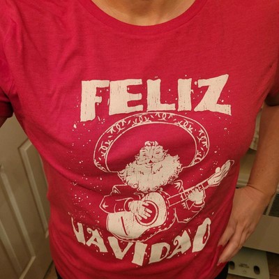 Womens Feliz Navidad T Shirt Funny Guitar Mexican Santa Claus Christmas Tee - Crazy Dog Women's T Shirt Gift For Christmas Red S