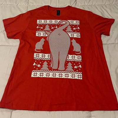 Womens Festive Cat Butt Ugly Christmas Sweater T Shirt Funny Holiday Party Tee - Crazy Dog Women's T Shirt Gift For Christmas Red M