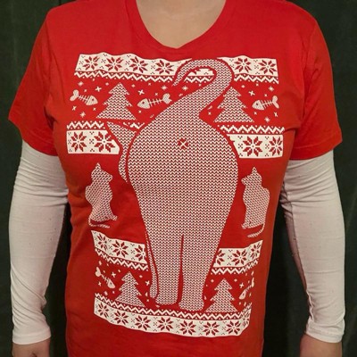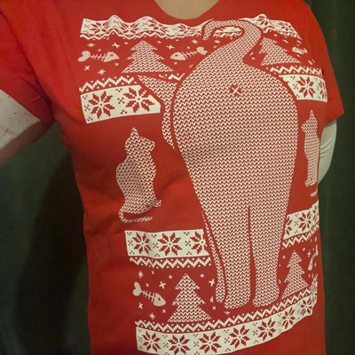 [This review was collected as part of a promotion.] This shirt is very comfortable and very hilarious. I bought this as a gift but decided to keep it for myself because I like it so much. It is so soft and comfortable to wear and I wear it all the time now. Even though it is Christmas/winter themed, that part of the design is subtle enough for it to just be a year round cat shirt, at least according to me. I ordered a medium and it fits me well, a little loose in a comfortable way, not tight anywhere. My shoulders, bust, and waist are 15”, 36”, and 30” respectively.