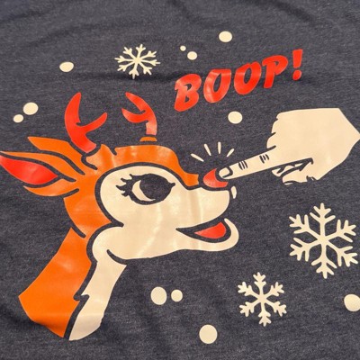 - Playful Reindeer Artwork: Features the Boop Rudolph design with a cute reindeer and fingertip boop moment that adds playful charm to winter outfits; a fun seasonal graphic suited for casual wear, cozy gatherings, office themes and relaxed holiday activities