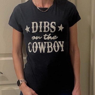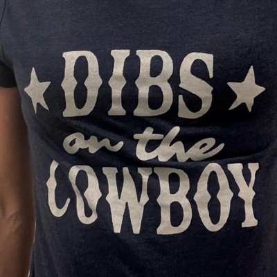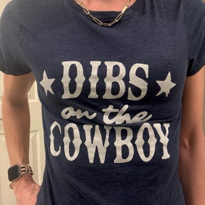 Womens Funny T Shirts Dibs On The Cowboy Sarcastic Western Graphic Novelty Tee for Ladies - Crazy Dog Women's T Shirt With Sarcastic Sayings Navy S