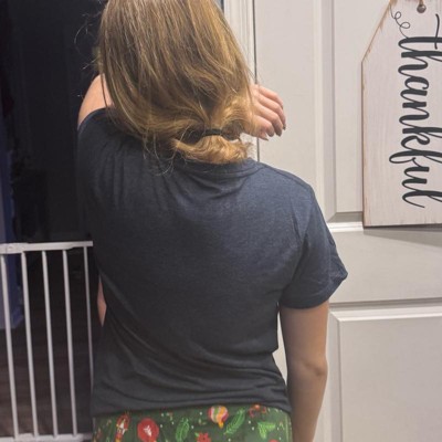 [This review was collected as part of a promotion.] My daughter is pictured here wearing a size small, which is our typical true size fit and overall this fit her perfectly both in the length and the width. This is a high-quality graphic T that is perfect for the holidays paired with fun loungewear bottoms or a pair of jeans I also love the T-shirt was age-appropriate for her as she was only 12 years old and looked great on her and she was also very comfortable.