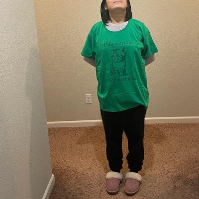 [This review was collected as part of a promotion.] Wow I stumbled upon the jackpot. This Kelly green shirt brightens up any day and moment. I just got the largest size for versatility. It’s a thick cotton long time basics brand shirt and then printed in the USA. I’m 5’2 and 120ish lbs wearing size small. Can’t ask for more with this combo and affordable.