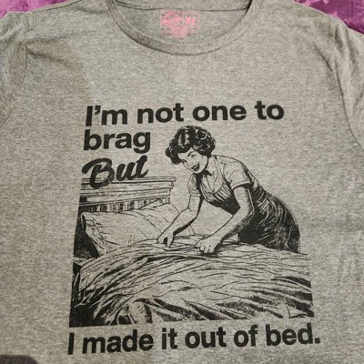 Womens Funny T Shirts Im Not One to Brag But I Made It Out Of Bed Sarcastic Graphic Novelty Tee for Ladies - Crazy Dog Women's T Shirt With S