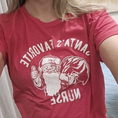 [This review was collected as part of a promotion.] Who is Santa's favorite nurse? I don't know LOL. I ordered this in a women's extra large usually for women's sizing I do tend to size up a little bit I normally wear a women's large. This was a perfect shirt for me since I am a nurse and I can wear this under my scrubs or with my jacket. But really if you ask me I think I am Santa's favorite nurse.