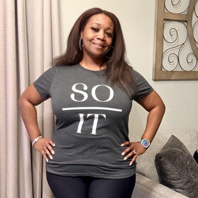 [This review was collected as part of a promotion.] I am 5’5” and wear a women’s XL or size 16 shirt. I am ordered a size XL in women’s cut. I typically prefer a more baggy fit in my shirts but I am trying to wear things that are more fitted. This shirt fits perfectly and feel incredibly comfortable enough for all day wear. The lettering is vibrant and eye catching. Perfect for casual wear and to make a statement.