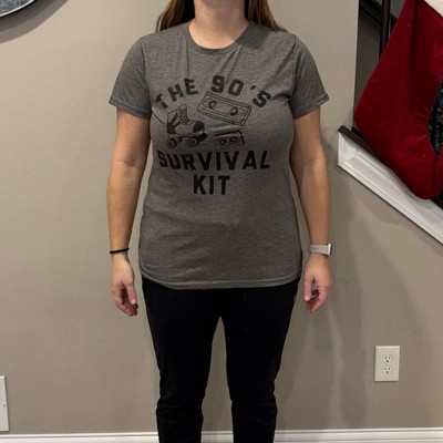 Womens Funny T Shirts The 90s Survival Kit Sarcastic Retro Graphic Tee for Ladies - Crazy Dog Women's T Shirt For Retro Fans Dark Grey M
