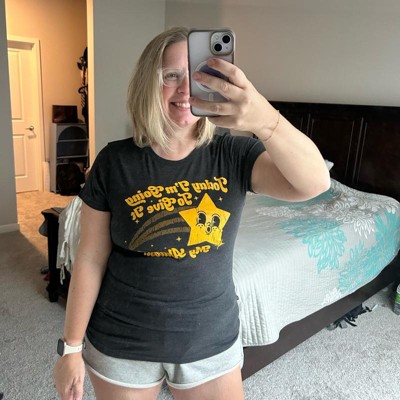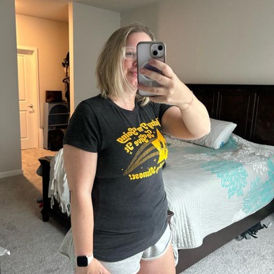 [This review was collected as part of a promotion.] This is a shirt that is a size medium. I am 5 foot four and 170 pounds. Currently I’m in between sizes and I believe I would’ve sized up for more of a loose fit. I love the singing on this shirt as a teacher I plan on wearing it when we go back to school. The fabric itself is super comfortable and I’m excited to wear this!