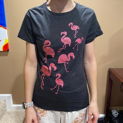 Womens Glitter Flamingos T Shirt Funny Cute Top Vacation Graphic Novelty Tee for Ladies - Crazy Dog Women's T Shirt for Animal Lovers Black M