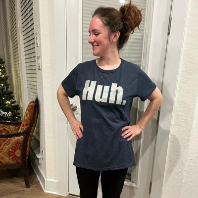 Womens Huh T Shirt Funny Interesting Wondering Weird Joke Tee for Ladies - Crazy Dog Women's T Shirt With Sarcastic Sayings Navy L