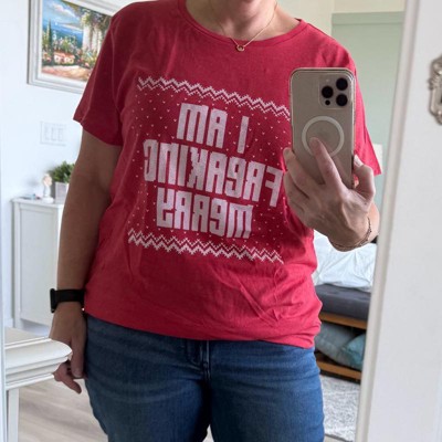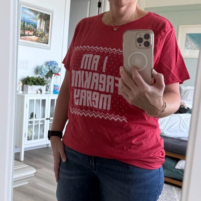Womens I Am Freaking Merry T Shirt Funny Christmas Spirit Holiday Party Graphic Tee - Crazy Dog Women's T Shirt Gift For Christmas Red XL