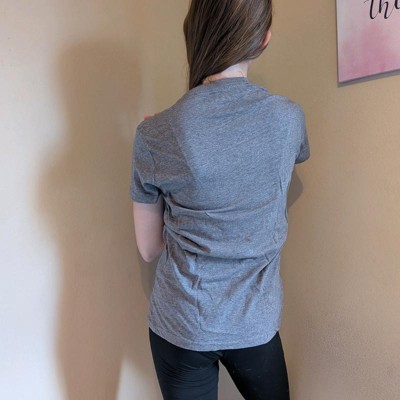 [This review was collected as part of a promotion.] My 13-year-old daughter wears a size of 14 and 16 in youth and extra small in women's. She asked for a small size of this shirt because she likes her shirts to be a little baggy. I was surprised at how form-fitting this shirt was for a small but she really loves it. The length is more like a small, but the width seems more like an extra small. She loves the phrase and got a big kick out of it. The lettering is slightly faded. I'm not sure if that is intentional or not.
