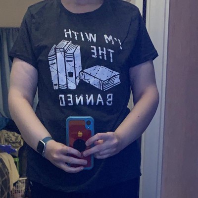 Womens Im With The Banned T Shirt Funny Anti Censorship Book Reading Lovers Joke Tee for Ladies - Crazy Dog Women's T Shirt for Nerds - 1 of 4