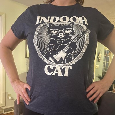 Womens Indoor Cat Funny T Shirt Introvert Sarcastic Tee for Ladies - Crazy Dog Women's T Shirt for Introverts Navy M