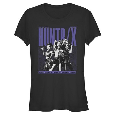 Prepare for debut with these incredible designs from the new, top-charting Netflix Film: K-Pop Demon Hunters! Dance to Soda Pop or Takedown with this Women's Huntrix World Tour Graphic T-shirt that features your favorite girl band, Huntrix, with their names printed below, and the word "Huntrix" in bold purple lettering printed above. These designs are going to be everything you can think of, so gear up to take all demons down while looking like the greatest idol the world has ever seen with out-of-this-world, officially licensed K-Pop Demon Hunters apparel!