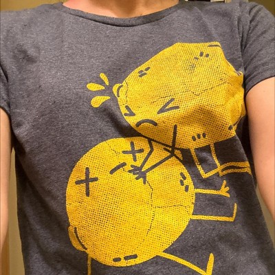 Crazy Dog claims its shirts are ultra soft and tagless but my shirt has a Gildan tag on it. It doesn’t feel soft to me; it feels like a typical cotton polyester blend T-shirt. Otherwise, the graphic is funny and quite large but I like it. I wouldn’t pay full price for it. I got it at 25% off. Note that it is a ladies fitted shirt so I sized up.