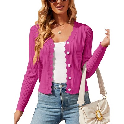 Womens Lightweight Knit Cardigan V Neck Long Sleeve Front Button Down Elegant Shrugs for Dresses,Pink - XL