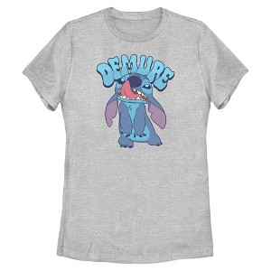 • Strut your stuff with this stylish new everyday women's t-shirt that is perfect for every occasion! Featuring Stitch and the word "Demure" printed across the front.