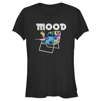 • Strut your stuff with this stylish new everyday women's t-shirt that is perfect for every occasion! Featuring Stitch relaxing on a hot summer day and enjoying a lemonade with the word "Mood" printed above in white.