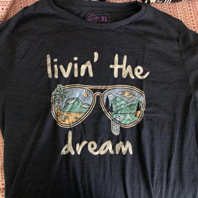 Womens Living The Dream T Shirt Cool Vacation Tee Graphic Novelty Tee Beach for Guys - Crazy Dog Women's T Shirt For Summer Vacation Navy XL