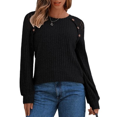 Womens Long Sleeve Tunic Tops Casual Crew Neck Dressy Shirt Lace Patchwork Blouses Pullover Sweaters