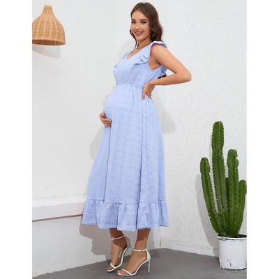 Womens Maternity Sweetheart Neckline Flutter Sleeve Ruffle Hem Maxi Dress