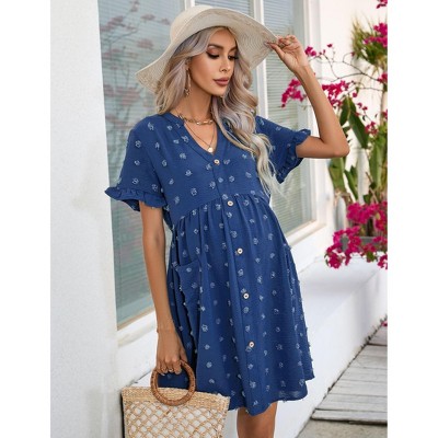 - Features charming short fluted sleeves that add breezy movement and a touch of romance to this elegant maternity maxi dress