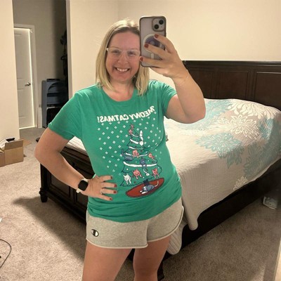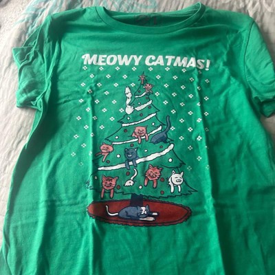 Womens Meowy Christmas Cat Shirt Tree Ugly Merry Crazy Funny Gift Sweater - Crazy Dog Women's T Shirt Gift For Christmas Green S