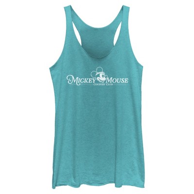 Womens Mickey & Friends Peace Sign Gloves Racerback Tank - Tahiti Blue - Large