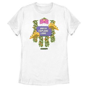 Whether you're building something amazing, battling mobs, or playing with friends, show your love for everyone's favorite game in this officially licensed Women's Minecraft Axolotl Build Explore Love Graphic T-Shirt! This unique tee features two adorable yellow axolotls, the inspiring message: "Build Explore Love," and colorful vines and flowers printed across the front. Join all your favorite boxy characters in a world of endless possibilities with fun new graphic apparel for the whole family today!