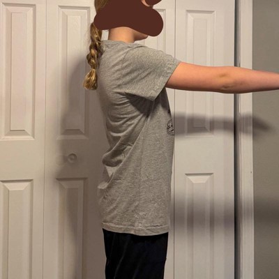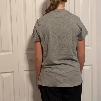 [This review was collected as part of a promotion.] This shirt is so cute. My daughter is wearing a women’s medium. Love the handwriting on the shirt. Perfect for my daughter who loves dogs. Shirt is a little long and she’s 5’4”. She normally wears a women’s small, but got a size bigger so she can wear it for awhile, it does have a slim fit so it’s not to loose. Her waist is 19in. Shoulder to shoulder 16. So she can grow into this. Will be cute will leggings. Shirt is soft. Light grey looks great with anything