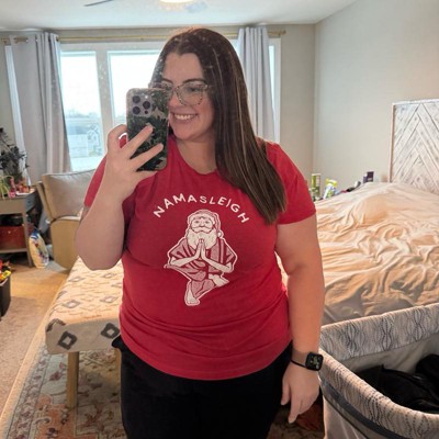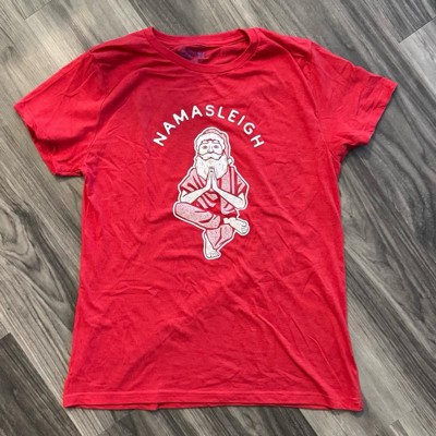 Womens Namasleigh T Shirt Funny Namaste Yoga Meditation Santa Sleigh Christmas Tee - Crazy Dog Women's T Shirt Gift For Christmas Red S