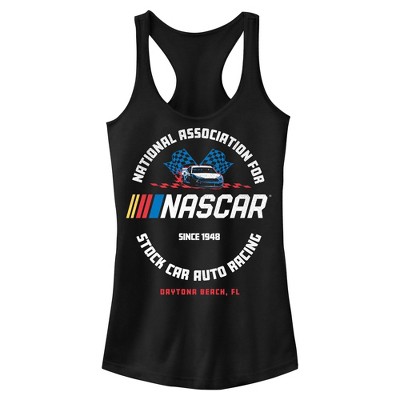 Ready to wear the thrill of the track? This officially licensed Women's NASCAR Since 1948 Daytona Beach Logo Racerback Tank Top puts you in the driver's seat of racing style! This epic design features a high-speed race car, checkered flags, and the legendary franchise logo surrounded by "National Association for Stock Car Auto Racing." Whether you're cheering from the stands or the sofa, celebrate over 75 years of stock car greatness with this epic racing apparel that brings heritage, horsepower, and high-speed fashion to every outfit!