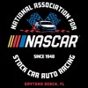 - Put the pedal to the metal on your look with this new women's t-shirt that is perfect for race day! Featuring a race-ready vehicle, blue checkered flags, and the iconic NASCAR logo surrounded by "National Association for Stock Car Auto Racing" in a full-throttle design.