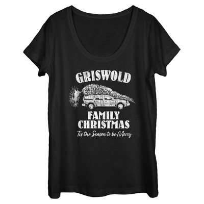 • Celebrate a hilarious Christmas season with this festive women's relaxed fit t-shirt that is perfect for the holiday season! Features the phrase: "Griswold family Christmas," and "Tis the season to be merry," along with a car carrying a Christmas tree on top.