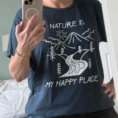 Womens Nature Is My Happy Place T Shirt Funny Outdoor Camping Hiking Lovers Tee for Ladies - Crazy Dog Women's T Shirt For Campers - 1 of 4