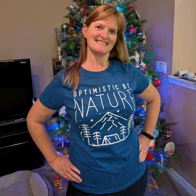 Nature Vibes Only: Share your sunny outlook with this “Optimistic by Nature” tee; designed for women who love camping, hiking, and trail adventures; features bold mountain, forest, and tent design for a fun outdoorsy look