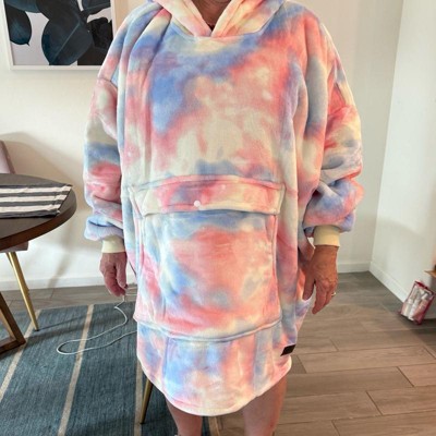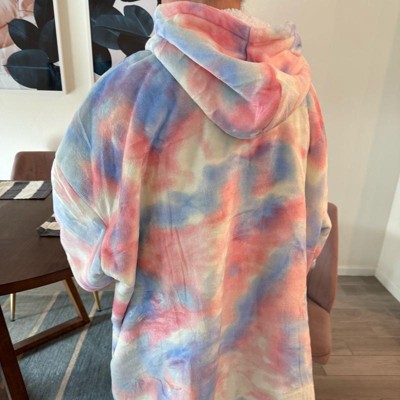 [This review was collected as part of a promotion.] For reference I am 150lbs and 5'2". This is a lovely oversized wearable blanket with fleece lining and minky exterior. I loved the cotton candy tie-dyed pattern, although there were lots of fun options to choose from. I live in a climate with four seasons and am really looking forward to wearing this during the winter months. This is really big I can curl up inside of it and it keeps my feet warm! I love it!