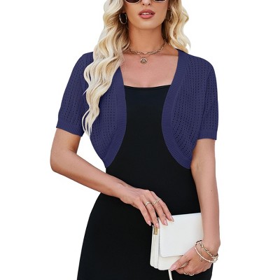 Womens Plus Size Casual Long Sleeve Cardigan Open Front Cardigan Work Office Jacket Suit Cardigan With Pocket Navy 4XL