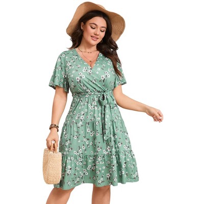 - Womens Plus Size Clothing Plus Size Square Neck Dress Ruffle Sleeve Flowy Dress with Pockets