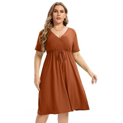 - Womens Plus Size Clothing Plus Size Square Neck Dress Ruffle Sleeve Flowy Dress with Pockets